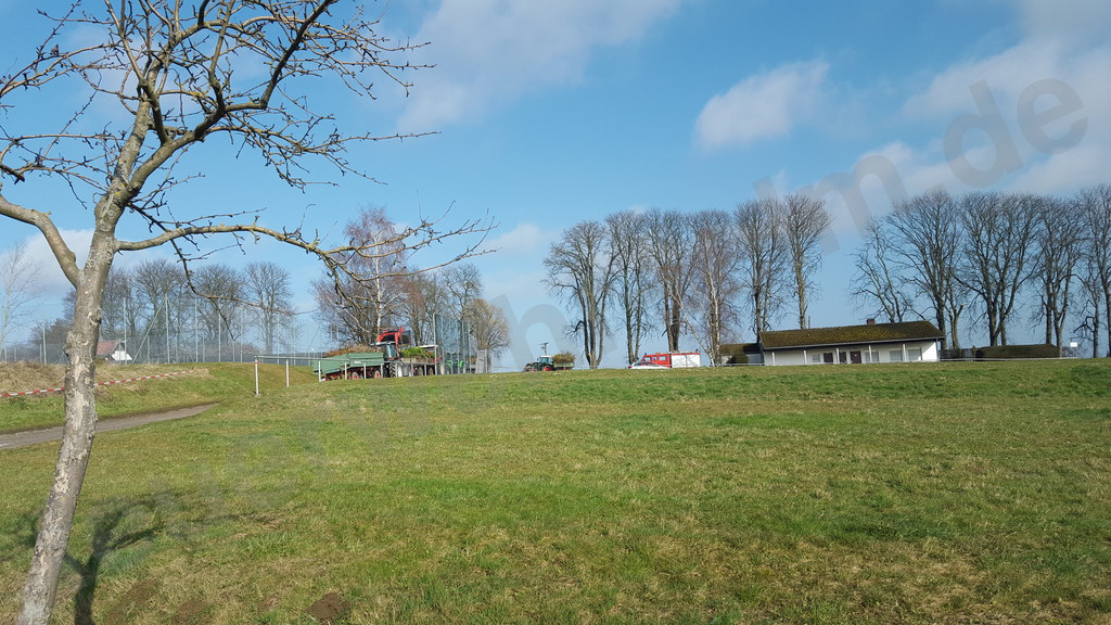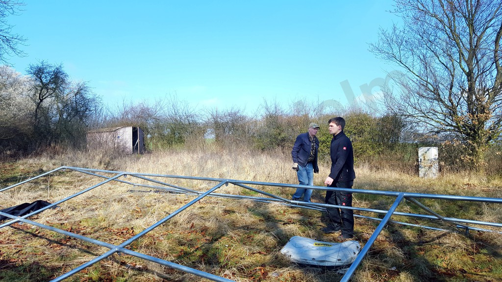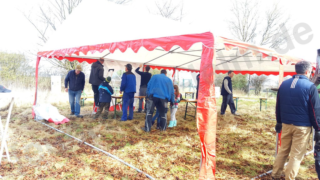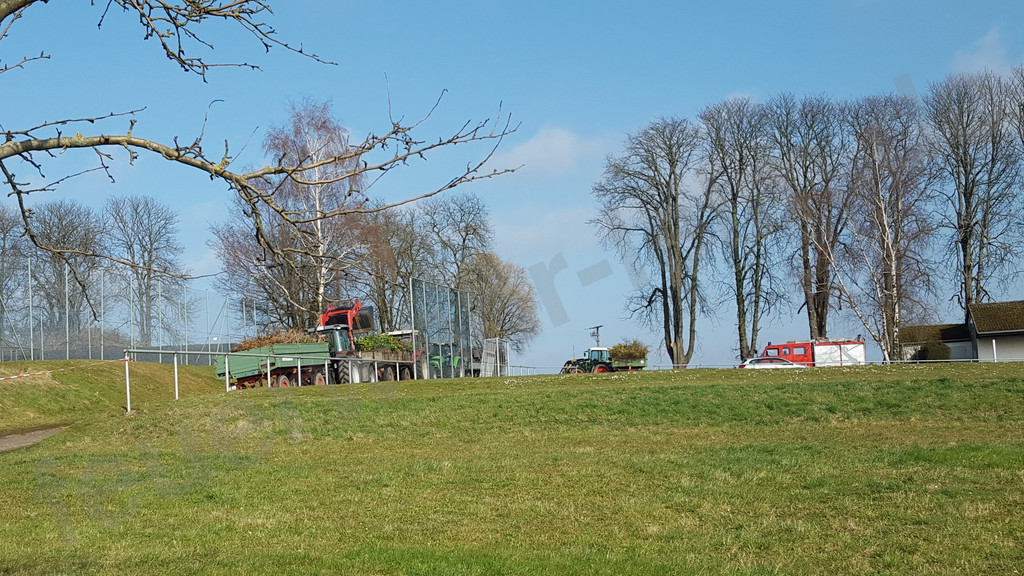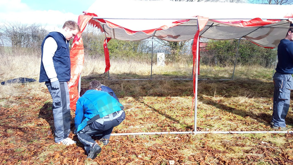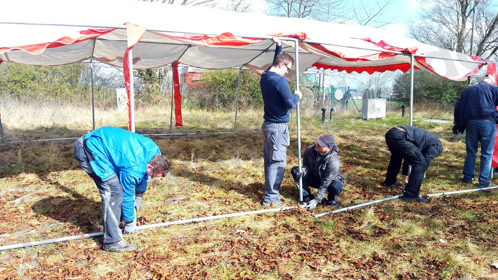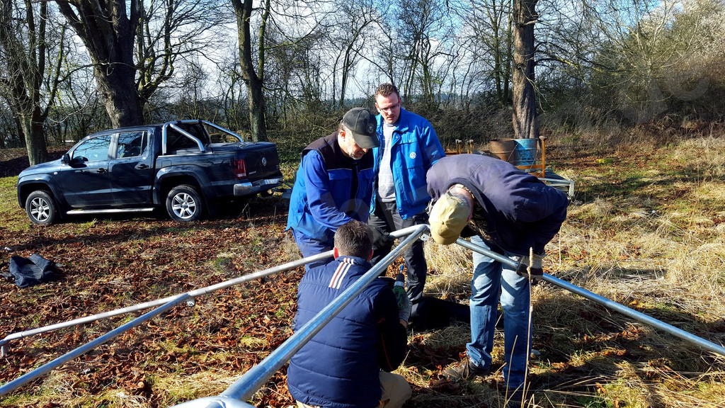Wieder einmal hat der Morgen bei bestem Wetter mit schwerem Fahrzeug und vielen Helfern begonnen.